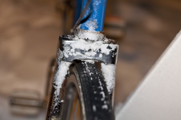 The bike is now in rideable condition, I will paint the frame after I have filed the welds flatter. The seat tube is maybe too upright, I had to bend the seat post a little backwards. Next time I will make it more laid back. This was a nice excercise to show that turning a fauber-crank beater into a track-ish beer hauling superbike is possible in five hours with an angle grinder and a MIG welding machine.