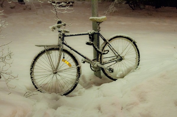 Tällanen kaveri odottaa aamulla oven edessä. Pihalla on pyörätelineissä noin metrin verran lunta ja 20 käyttämätöntä pyörää. Jouduin polkeen pihalle lumihankeen tollasen paikan, johon saatan lukita fillarin kiinni, ilman että se on jäänyt aamulla hankeen renkaista. Mä luulin, että Englannissa on ongelmia, mutta ne olikin vaan suurkaupunkien ongelmia. Helsinki on ainakin yhtä paska maa kuin Englanti.