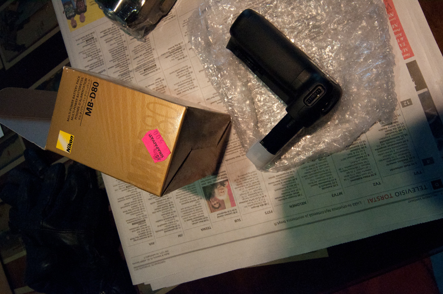 Kävin myös ostamassa Kärkkäiseltä kontaktiliimaa ja sattumalta pengoin vähän valokuvapuolen poistokoria. Nikon MB-D80 paristokahvoja poistossa. 5 euroa on virheellinen hinta, ilmeisesti irronnut jostain toisesta tuotteesta, jouduin maksamaan 45e. Ihan hyvä kaupat silti. Minun kannaltani tuon kahvan paras puoli on, että sinne käy AA-paristot kun aika usein unohdan laturin kotiin.