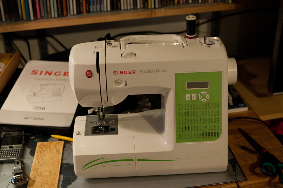 Sain myös enolta ompelukonetta lainaan. Kypsyin pyöräilyhousuihin, joiden lahkeet on ilmeisesti suunniteltu hormoonien suurkuluttajille. Minun tikkupohkeilla lahkeet lepatti koko ajan kettingissä ja ties missä. Samalla vaihdoin Enduran ylisurkeat tarranauhat vähän parempaan tavaraan. On muuten kehitys mennyt hurjasti eteenpäin ompelukoneissa, eka yritys ommella toppas Error Code 6:een.