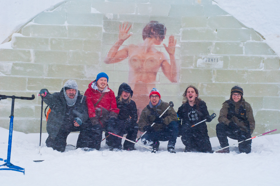 Tänään Oulussa vietettiin porokarnevaaleja. Kuten jo kirjoitin, meillä oli samassa yhteydessä potkukelkkapoolon näytösottelu. Katsojia oli hyvin vaikka keli olikin kohtalaisen kurja. Israelissa on kuulemma ns. itkumuuri, mutta Oulussa on nykyään tissimuuri, otettiin joukkuekuvat sen edessä.