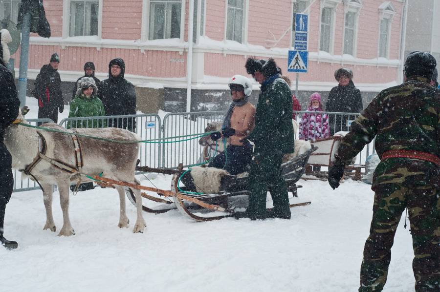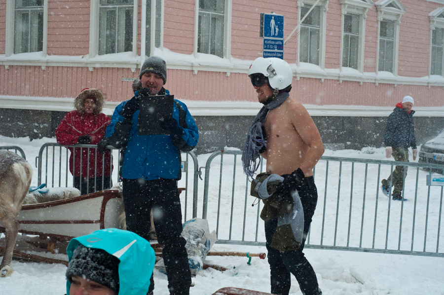 Päädyttiin lopulta Tapon kanssa ajamaan kilpaa porojokkiksessa. Ei päästy samaan lähtöön ja Tappo hävis omansa minun mielestä täysin ansiotta. Hieno johto meni plärinäksi kun naapuriradan poro lähti kiilailemaan. Repäisin sitten viimeisestä lähdöstä toiseksi parhaan ajan ja korkeimmat tyylipisteet. Osa sanoo, että se johtui puolialastomasta miesvartalostani, mutta minä tiedän että voitto tuli kypärän johdosta.